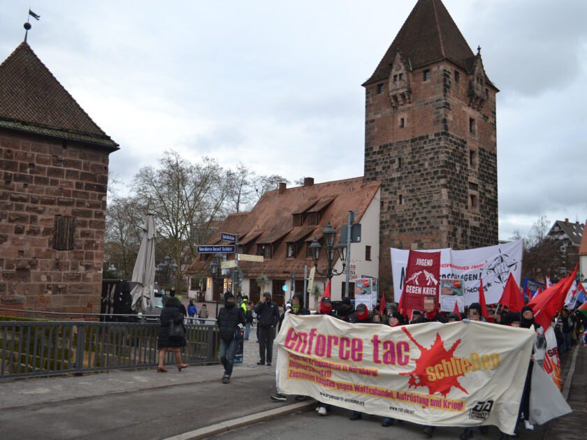 Am Samstag haben in Nürnberg mehrere Hundert Menschen gegen die Waffenmesse „Enforce Tac“ protestiert. Diese hat ihren Ursprung in den 70er Jahren und entwickelt sich seit Jahren zu einer der wichtigsten Vernetzungsplattformen für Rüstungsunternehmen, Sicherheitsbehörden, Politik und Waffenlobby.